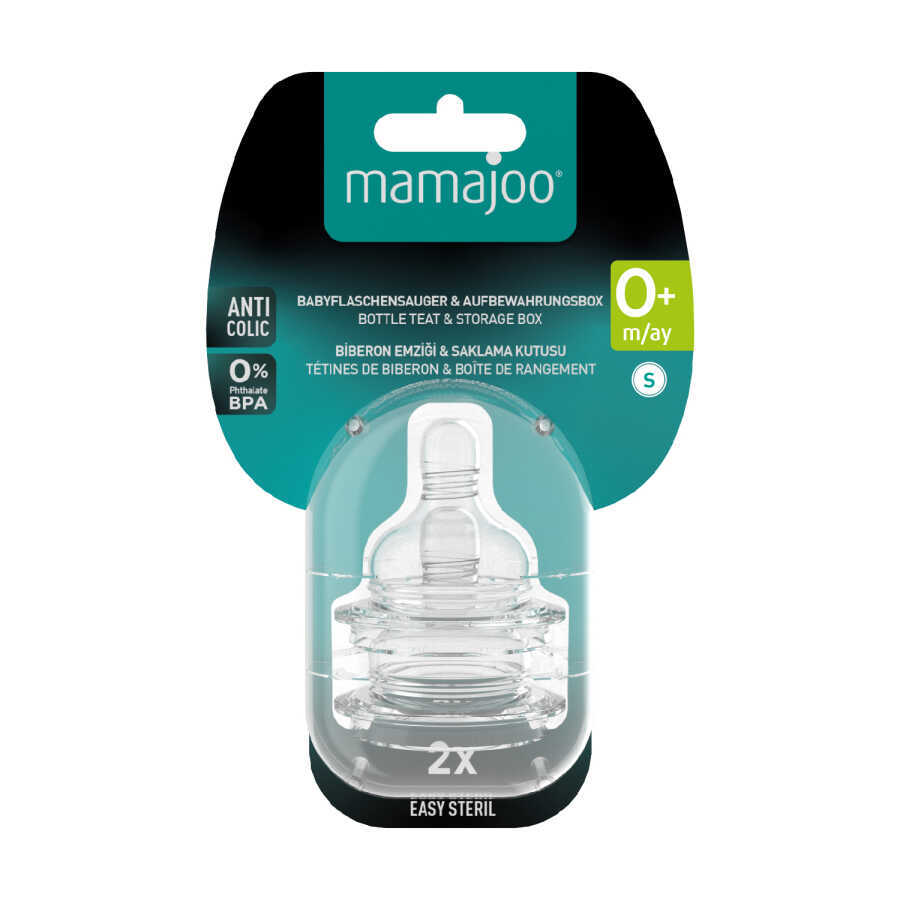 Mamajoo Biberon Emzikleri; anti-kolik valf sistemi sayesinde bebeğin biberonla beslenmesi sırasında hava yutma riskini azaltmaya yardımcı olur. Ambalajında bulunan saklama kutusu steril edilerek defalarca kullanılabilir ve biberon emziklerinin hijyenik olarak korunmasını sağlar. Mamajoo Anti-kolik Biberon Emzikleri, Mamajoo Gece&Gündüz, Silver ve Gold Plus Biberonlarla ve Mamajoo Alıştırma Bardakları ile uyumludur.