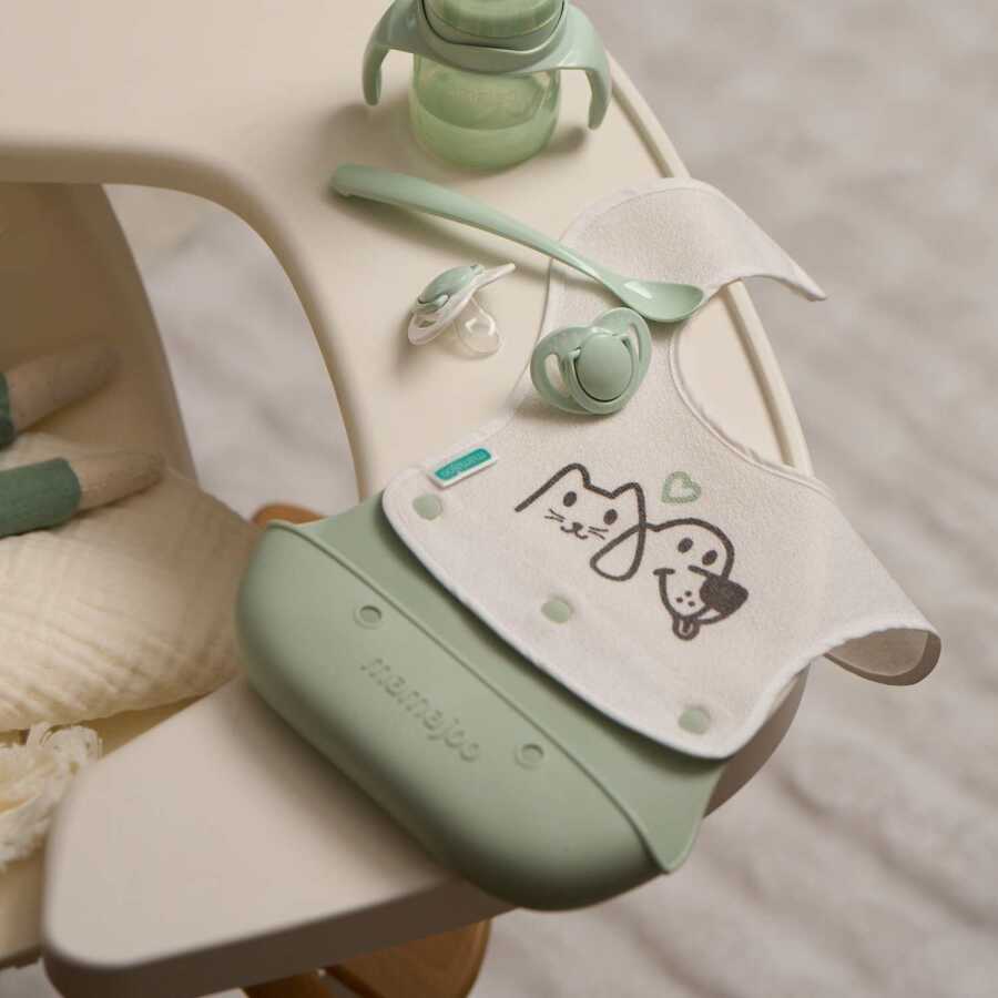 Mamajoo 2-in-1 Foldable Bib consists of two detachable parts: a cotton, waterproof fabric bib and a silicone pocket. The fabric bib protects your baby’s clothing and sensitive skin, while the outward-facing silicone pocket collects spilled food. Trying to pick up and eat the collected food supports your baby’s fine motor development. As your baby grows, the Mamajoo 2-in-1 Foldable Bib offers high practicality thanks to its easy daily cleaning.