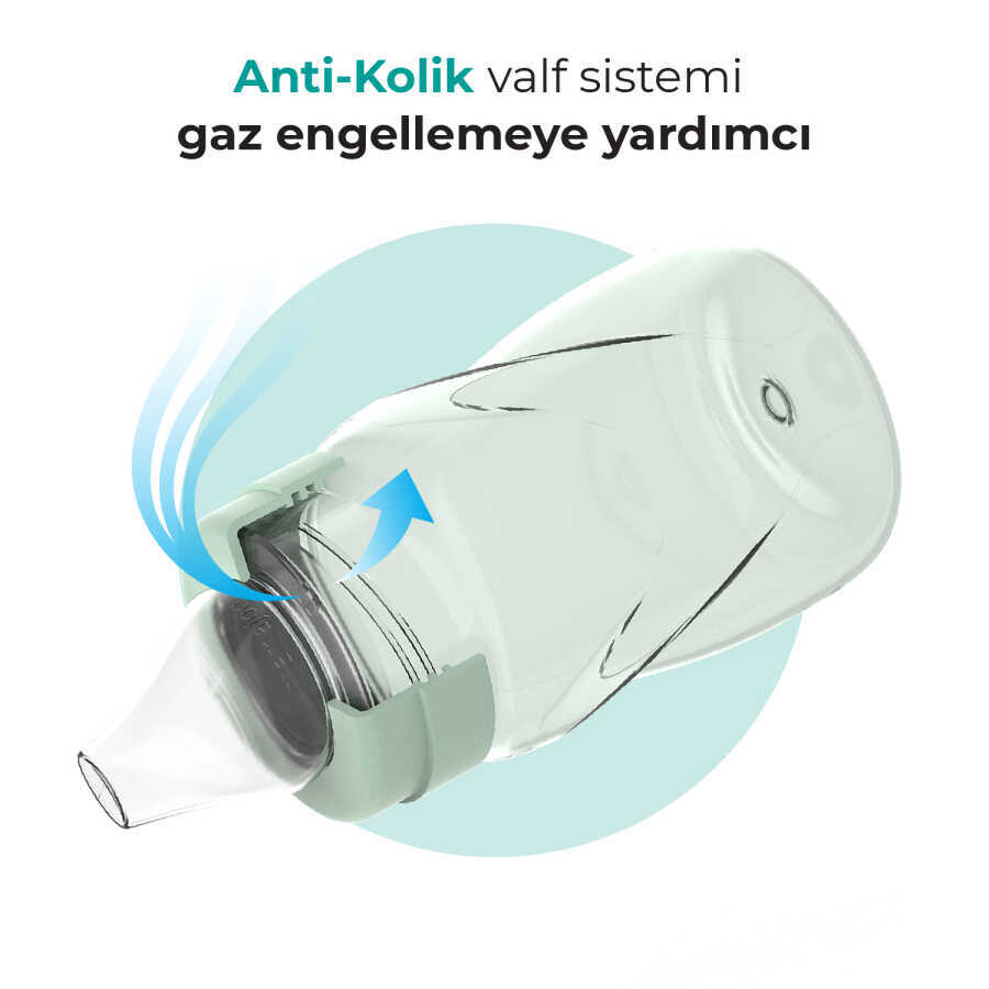 Anti-kolik valf sistemi sayesinde bebeğin bardaktan içerken hava yutmasını önlemeye ve böylece gaz sancısı riskini azaltmaya yardımcı olur.