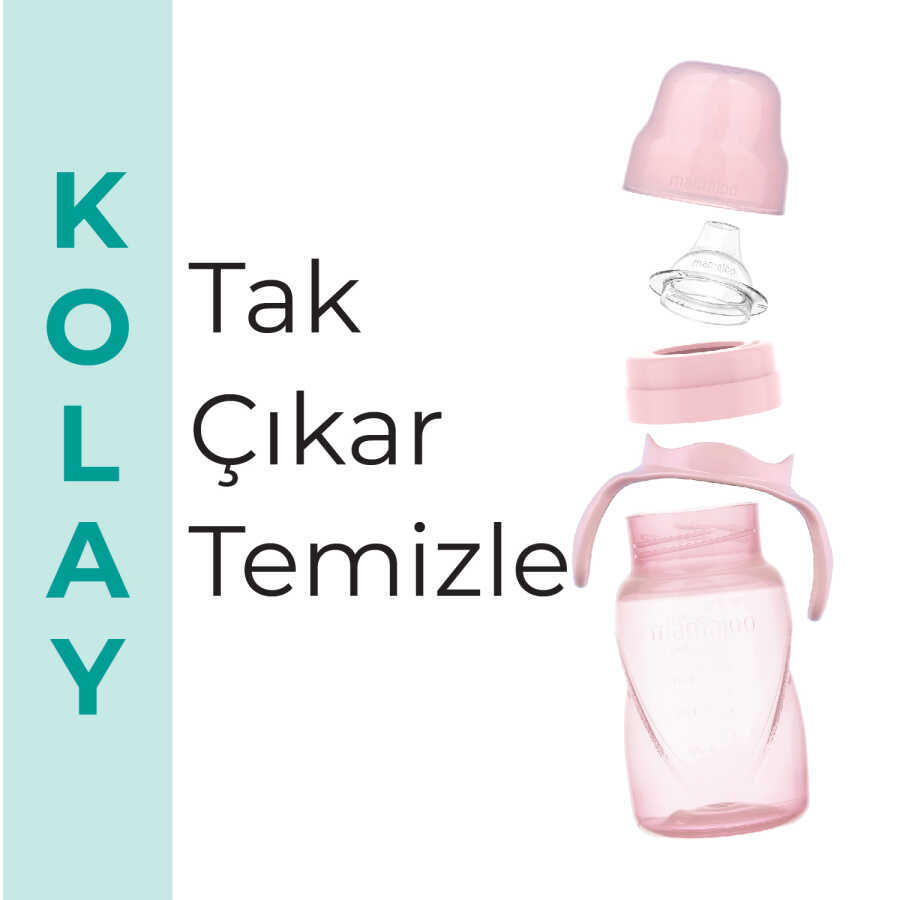 Mamajoo Kulplu Akıtmaz Alıştırma Bardakları, bebeklerin kendi başlarına içmeyi öğrenmelerine destek olmak ve biberondan bardağa geçiş sürecini kolaylaştırmak için yardımcıdır. BPA ve Fitalat içermeyen gıdaya uygun yüksek kaliteli malzemelerden üretilmiştir.