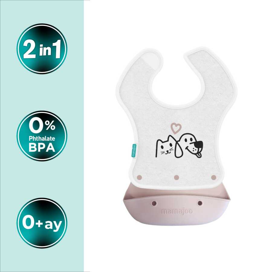 Mamajoo Silikon & Kumaş Katlanır Mama Önlüğü, bebeklerin yenidoğan döneminden itibaren büyüme sürecindeki farklı önlük ihtiyaçlarınızı tek bir ürünle karşılar. BPA ve Fitalat içermeyen gıdaya uygun silikon ve kumaştan üretilmiştir.