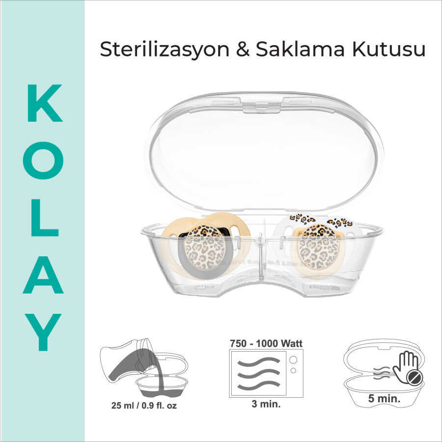 Wash the soothers thoroughly, place them in the Mamajoo Sterilization & Storage Box, add 25 ml of water, and microwave at 750–1000 W for 3 minutes. Let cool, then pour out the water. The Soothers will be hygienically ready for use.