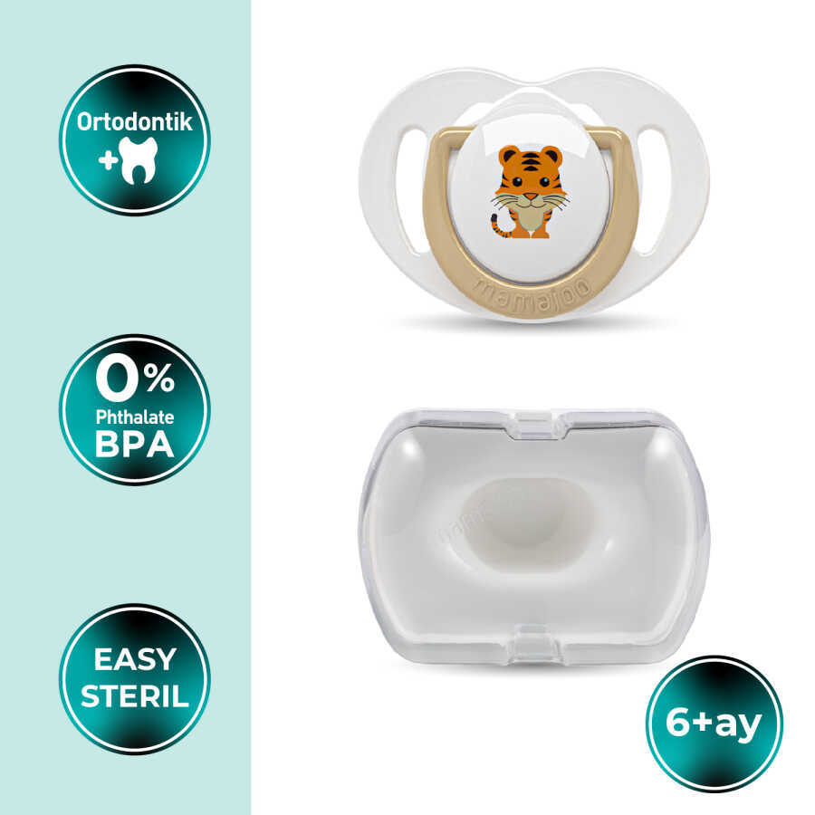 Mamajoo Orthodontic Soother, Ecru Tiger, 6+ Mo, Storage Box