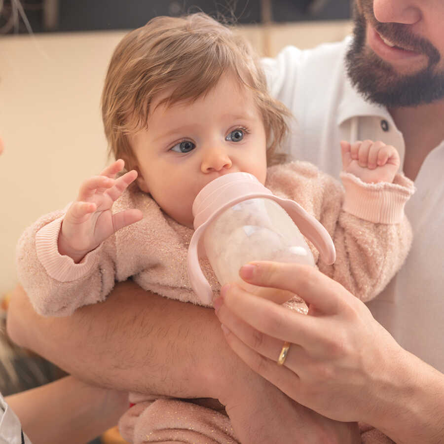 Mamajoo Silver Feeding Bottle 250ml & Non Spill Training Cup Powder Pink 160ml with Handle