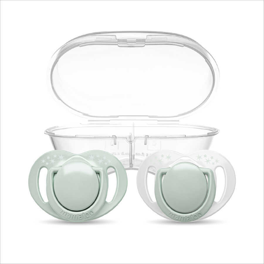Mamajoo Ortodontik Damaklı Emzik, Powder Green, 12+ Ay, Emzik Saklama & Sterilizasyon Kutulu, İkili Set