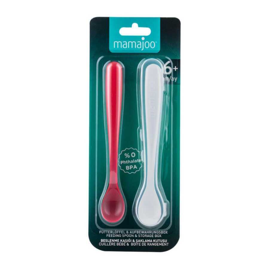 Mamajoo Twin Feeding Spoons Pink & Storage Box